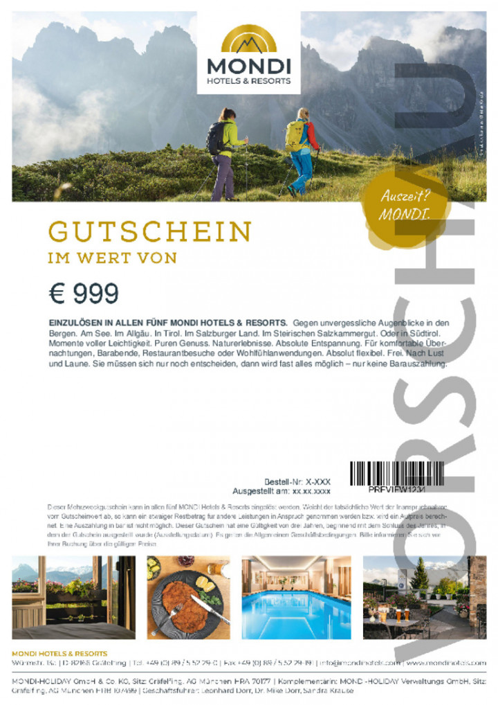 Denn diese Hotel-Gutscheine können im MONDI Hotel Axams ebenso wie in allen MONDI Hotels & Resorts für alle internen Angebote verwendet werden.